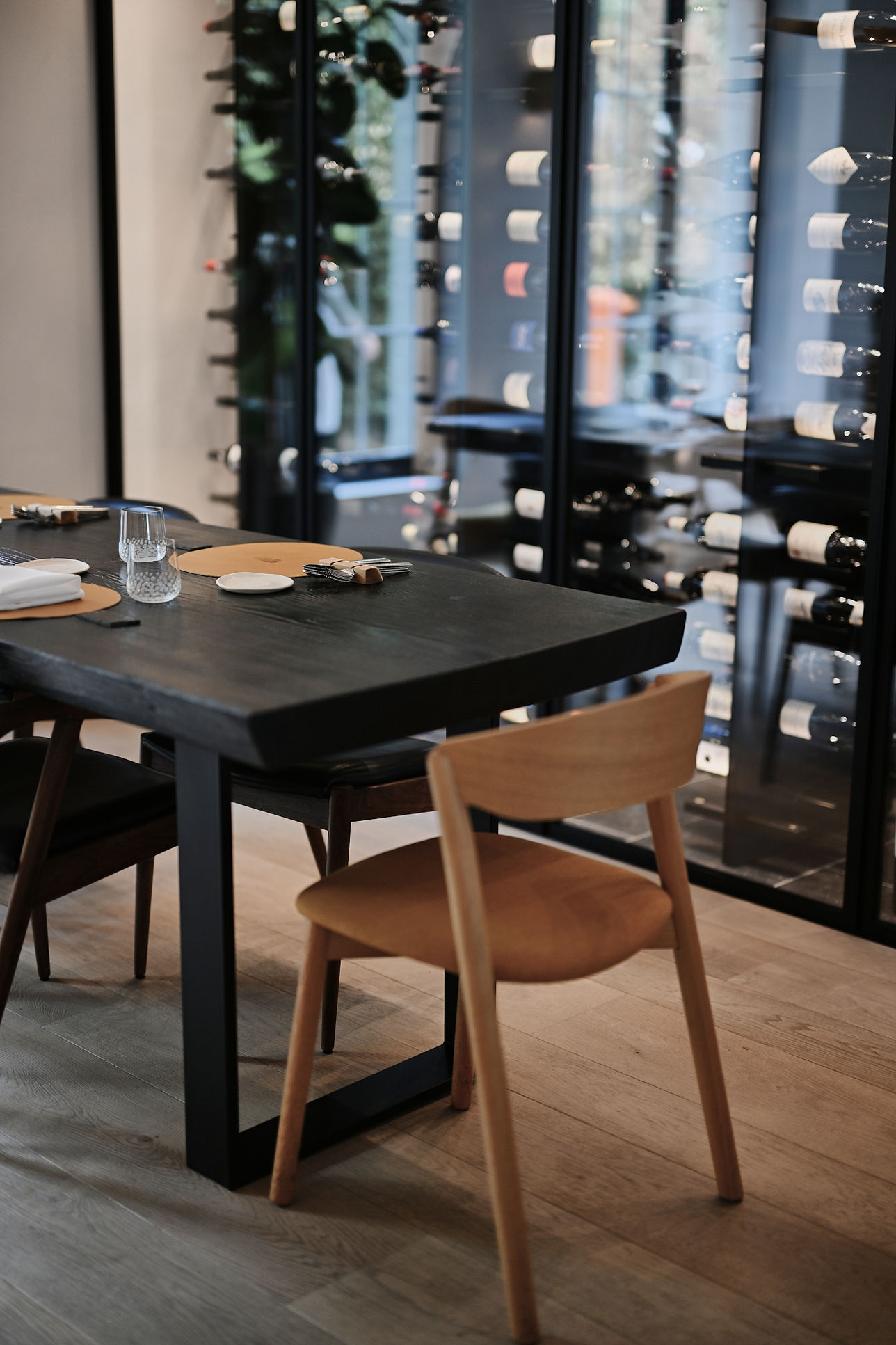 Menssa est un mot que j’ai inventé à partir de « mens » et « mensa ».L’esprit et la table. J’avais envie d’un lieu où ces deux dimensions se rencontrent réellement. Être cuisinier, c’est être conscient. Conscient du geste et de la pensée qui l’accompagne. Le comptoir s’est imposé comme une évidence. Un face-à-face. Une table sans distance inutile. On voit les gestes, les cuissons, le temps que prend un plat. Le service suit ce rythme : calme, précis, engagé. Le comptoir est un espace de liberté.